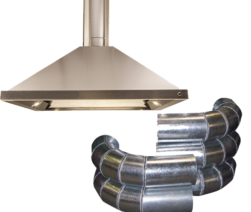 Coifa para churrasqueira e tubulação de saída do forno iglu fazendo a ligação à tubulação de exaustão da churrasqueira, em aço inoxidável, e tubos para exaustão para atende-lo da melhor forma.